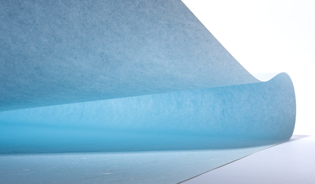 長いレーヨンの繊維を抄き込み、雲が流れるような模様をつけた和紙です。