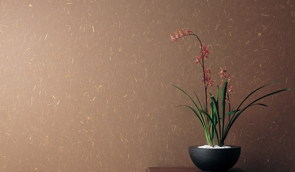 伝統的な土壁風の意匠、そして天然素材をふんだんに用いた個性を持つ和紙壁紙です。
